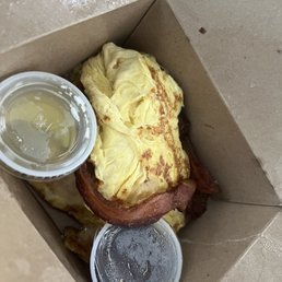 Best Weekday breakfast on the go! DO - order a Bacon/Egg/Cheddar on an Everything bagel. DON'T start your midweek hump morning without it! Love that the breakfast sandwiches come in containers instead of being wrapped up in foil or that other paper/foil combo. Quick, Polite, and Precise service!